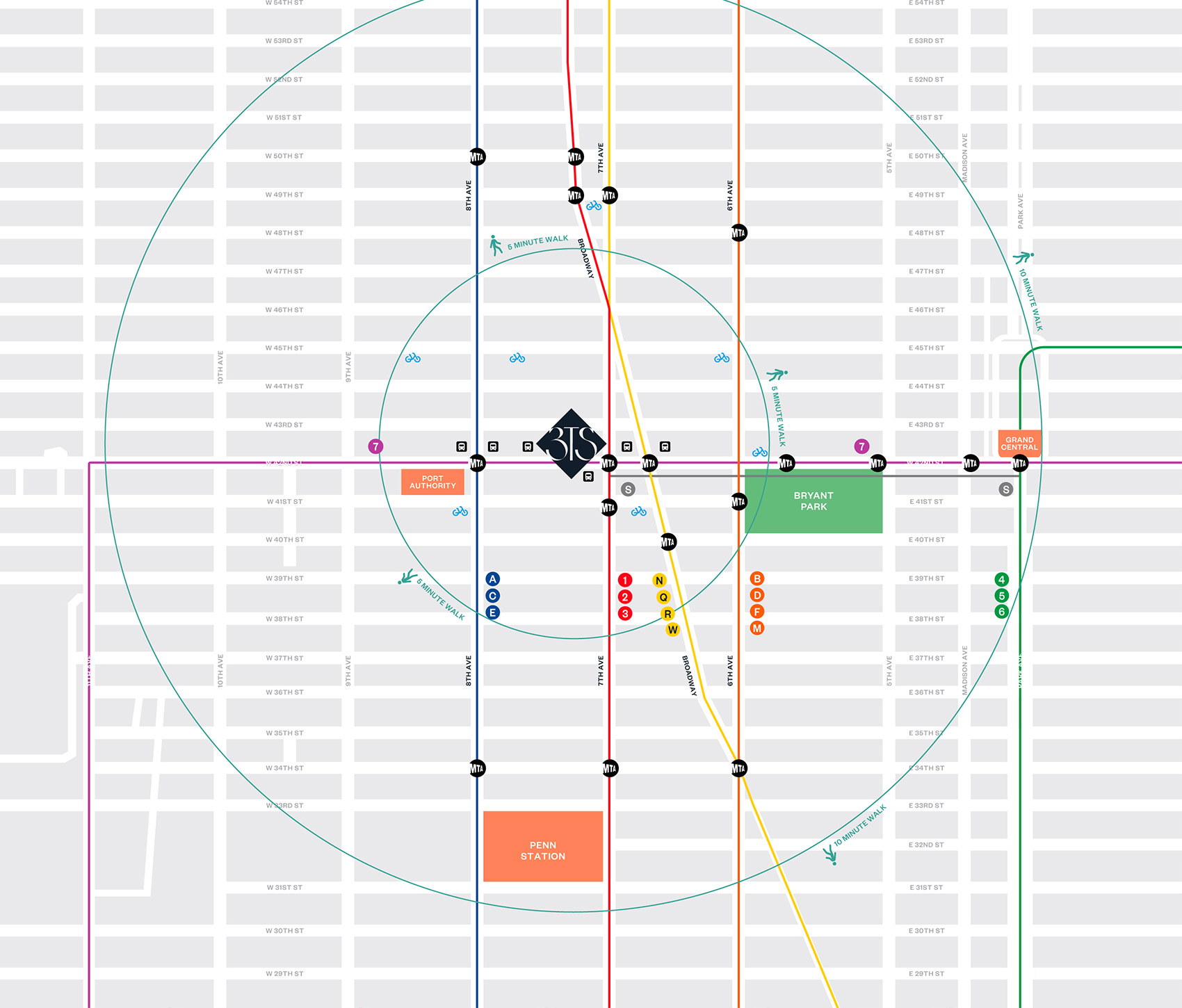 Within walking distance of over 19 New York subway lines, Metro North, the LIRR, numerous bus lines and more than 30 Citibike stations, 3 Times Square offers unbeatable accessibility.